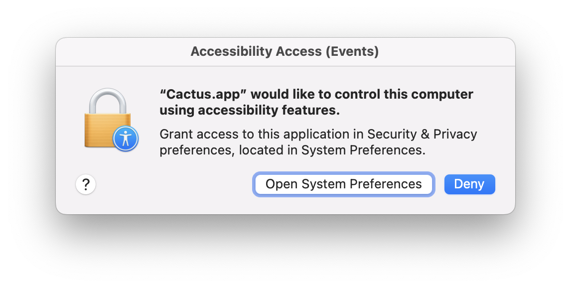 在弹出上述权限需求后,用户可打开设置界面,在辅助权限一项中选择 Cactus。