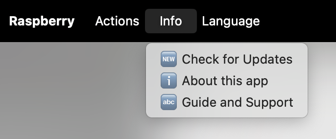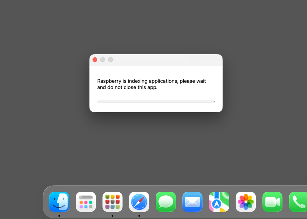 - Start the Raspberry application. On the first launch, it will index all icon caches of apps, and it can last up to several minutes. Please be patient and do not quit the app. This phenomenon will not occur after normal use.