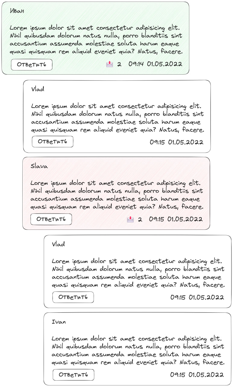 - На родительском комментарии указывается количество ответов, если ответов нет, то ничего не показывается. 1. Цвет фона родительского комментария зависит от суммы реакций в ответах на него. Если отрицательная сумма, то например красный, если положительная, то зеленый.