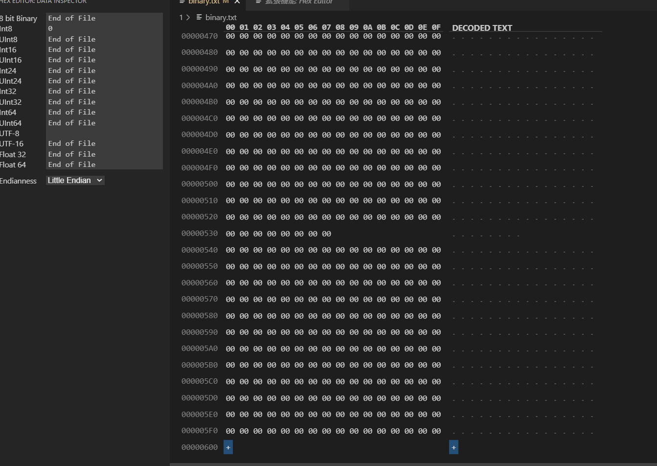 推奨のものの最新版が見つからなかったため、vscode拡張機能で見つけたMicrosoftの「Hex Editor」を使用した。