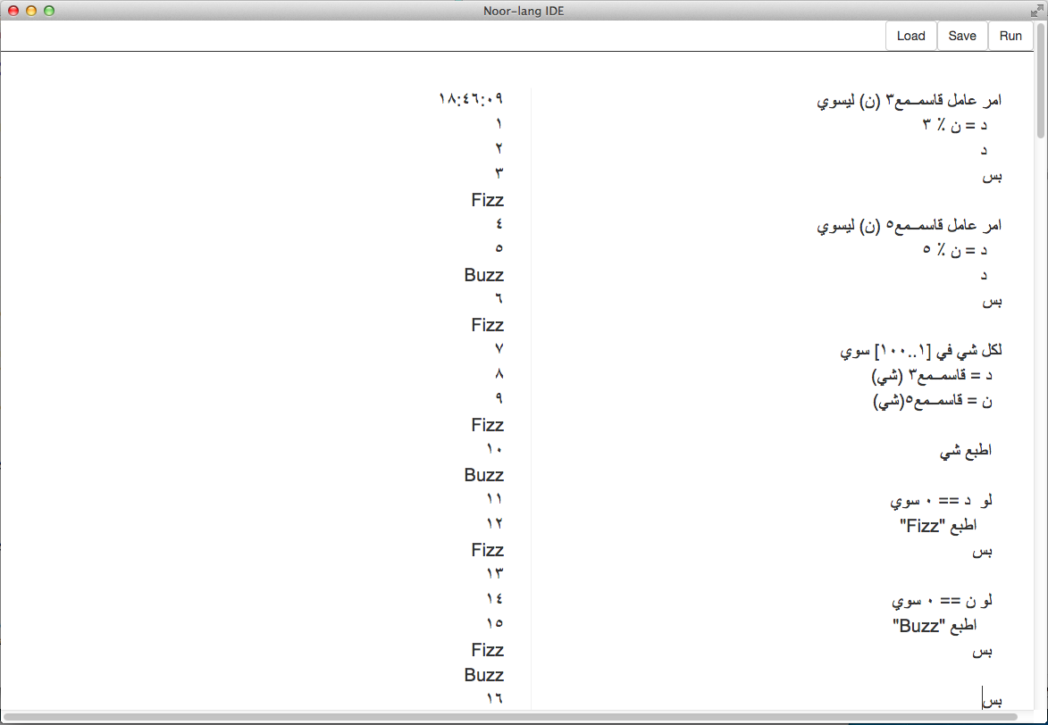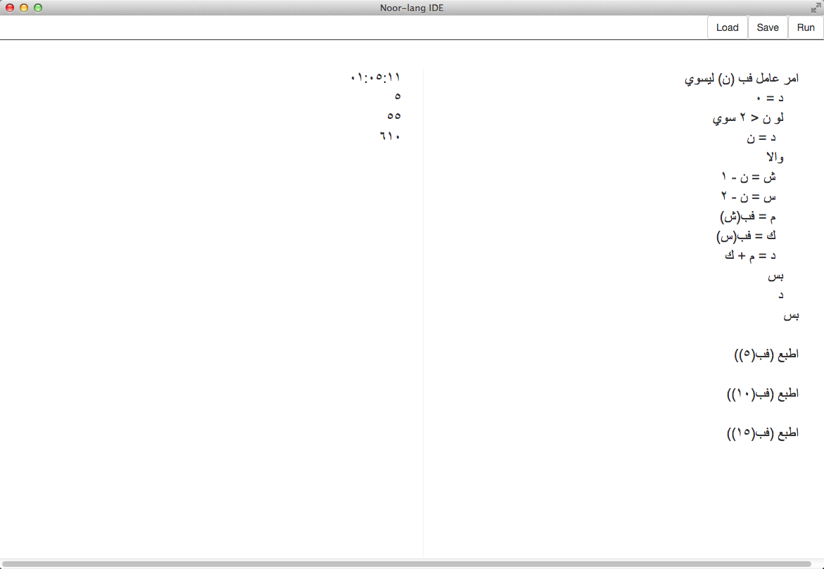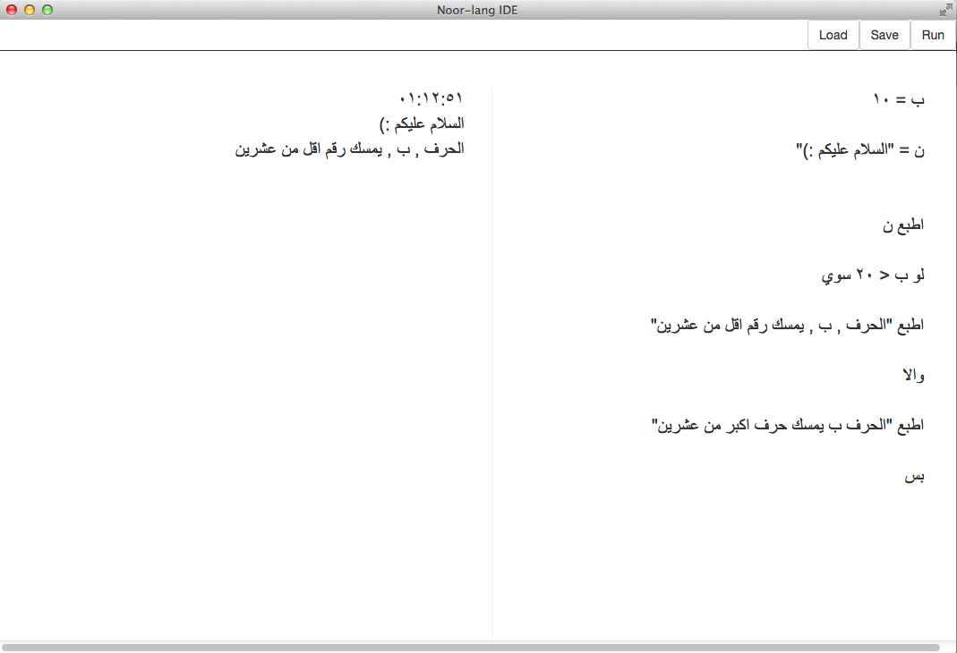 Noor comes with an IDE built to make it easy to write code in an arabic environment.