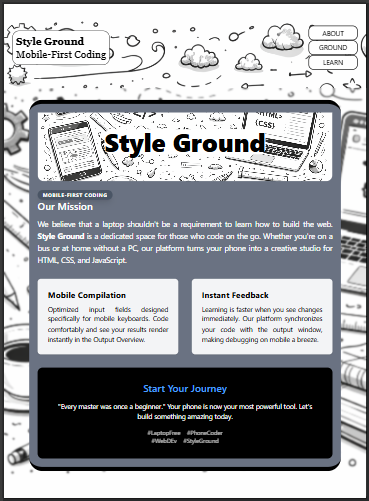 Style Ground is a transformative, mobile-first web development sandbox specifically engineered for aspiring developers who lack access to a laptop. By turning any smartphone into a high-performance coding workstation, this platform bridges the digital divide and makes web foundations accessible to everyone. Many brilliant minds are held back simply because they don't own a laptop. Style Ground ensures that a smartphone is the only tool needed to start a professional coding journey. Live-Sync Compiler: Provides immediate visual feedback for HTML, CSS, and JavaScript as you type.