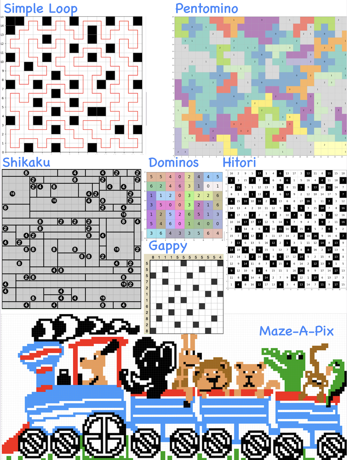 | 1 | SlitherLink | 10x18 14x24 20x36 20x30 16x19 30x25 60x60 Others |