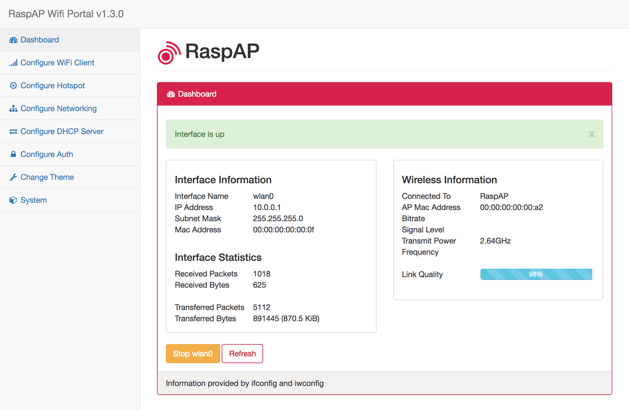 A simple, responsive web interface to control wifi, hostapd and related services on the Raspberry Pi.