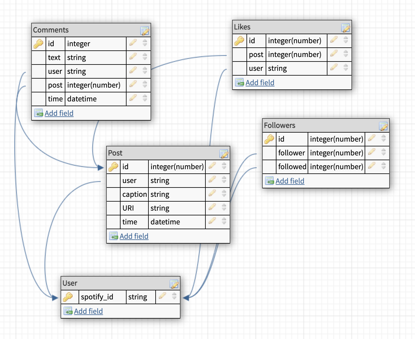 - Scope: First we would start with building the posting ability and a feed to see and comment music your friends have shared. Then we would add extra features like generating a playlist based off of your friends' recent songs, listing your current top 10 songs on your profile, and getting a random song of the day.