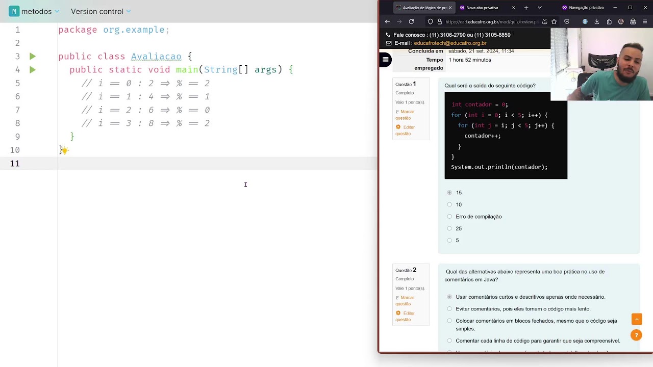 Aula de Java ao vivo: Tirando dúvidas e comentando a prova 22/September/2024 |
