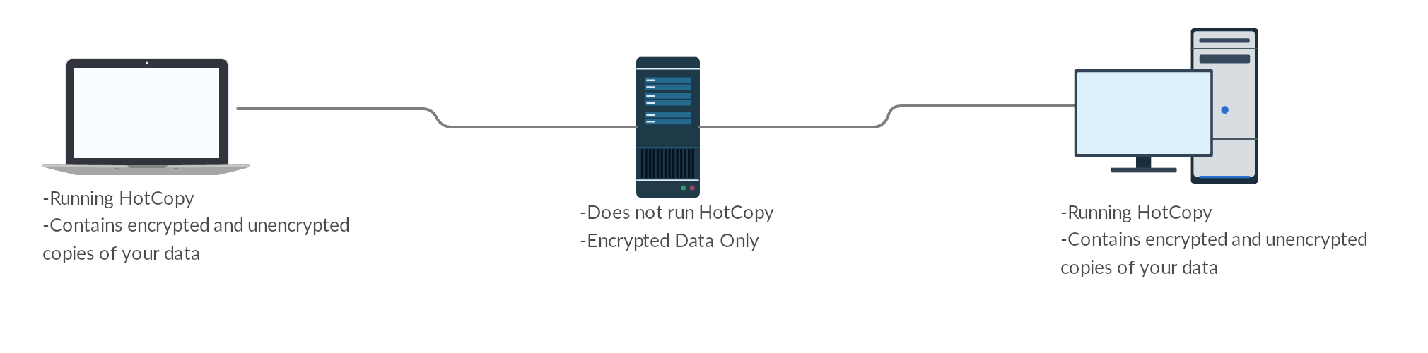 The problem this repo is meant to solve is the ability to treat some nodes as untrustworthy relay servers. If you have a server hosted in a public cloud, you may not want to allow it to store unencrypted copies of your personal data. To give a more detailed example, see the diagram shared below with three computers all running Syncthing.