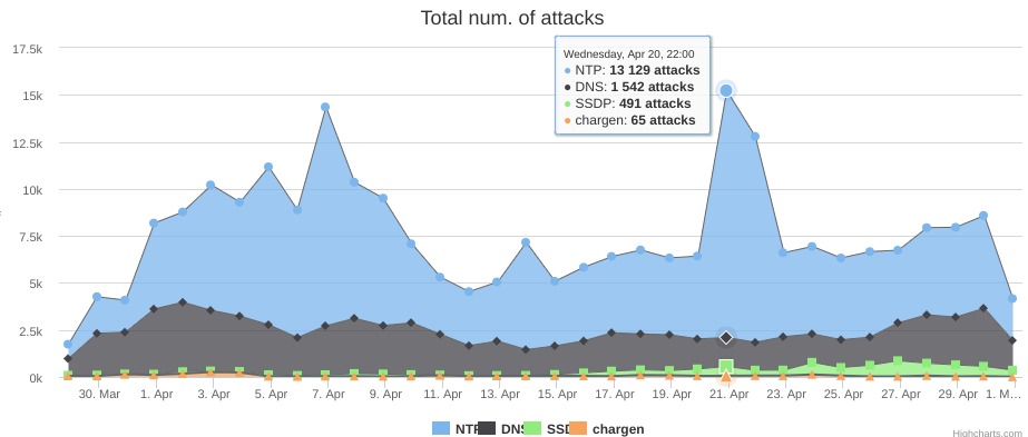DDoSPot is a honeypot "platform" for tracking and monitoring UDP-based Distributed Denial of Service (DDoS) attacks. The platform currently supports following honeypot services/servers in form of relatively simple plugins called pots: