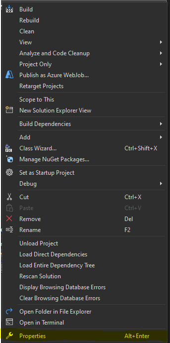 Go into Visual Studio and right click on your project, (Highlighted yellow)