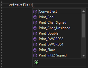 - Try writing "PrintUtils::", if you get a list of different functions then congratulations, if not you made a mistake somewhere, go back and try again.