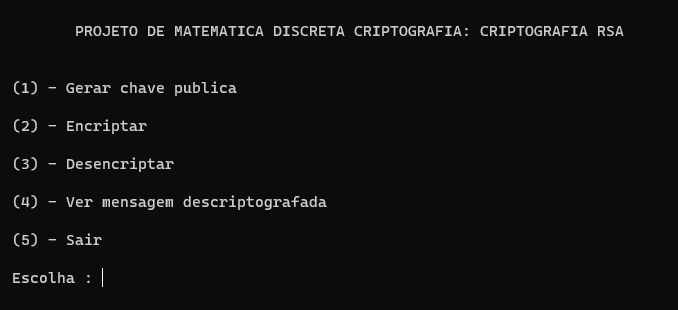 Projeto da disciplina de Matemática Discreta sobre criptografia RSA. 1º semestre(2022.1) do curso de Ciências da Computação na UFAL: Universidade Federal de Alagoas.