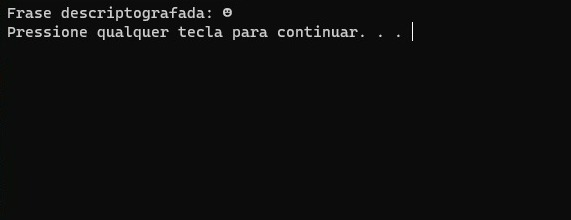 - Criptografar uma frase de até 100000 caracteres digitada pelo usuário e gerar um arquivo criptado em .txt
