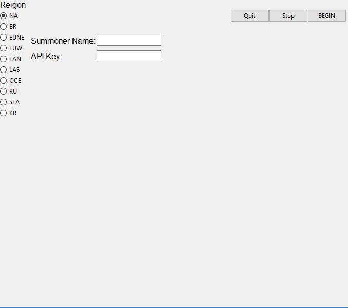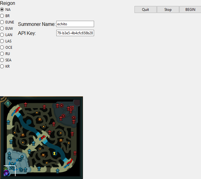 While loading in, use that time to input your reigon, Summoner Name, and API Key. Once you hit begin, the program will begin to search for the minimap. once found, it will display it on the bottom left of the GUI