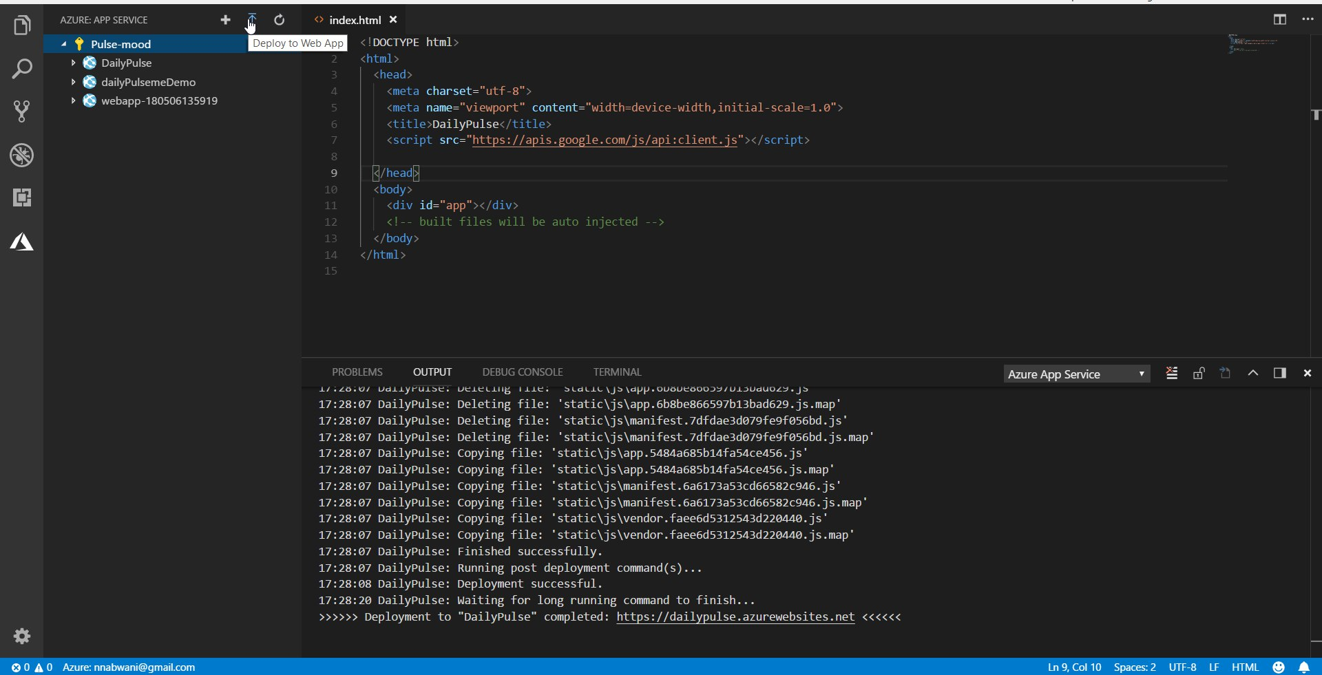 - We deployed the front-end project using Visual Studio, after downloading visual studio, all you need to do is to choose "deploy to web App" and choose the dist folder that was created earlier: