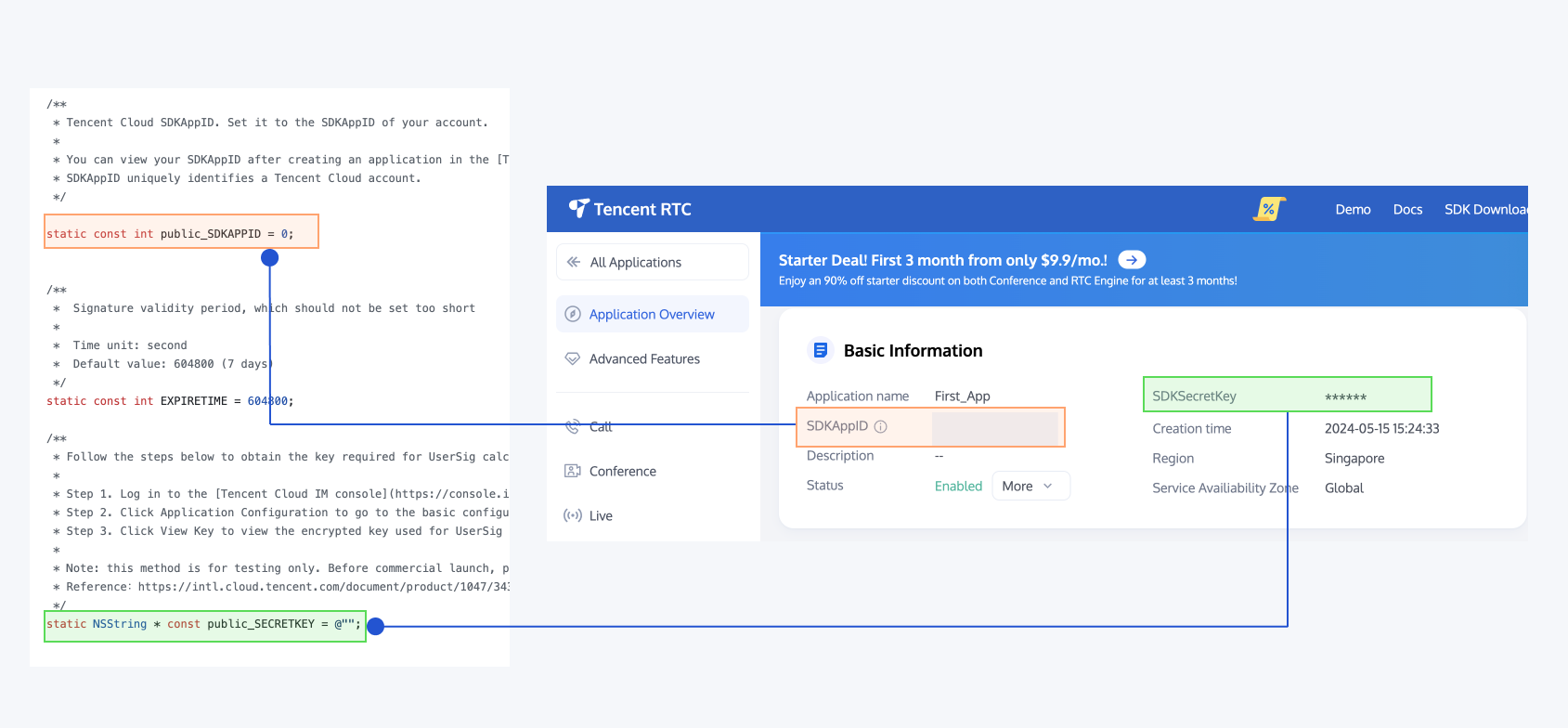 - Log in to the Chat Console. If you already have an app, record its SDKAppID and configure the app.