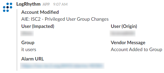 These are some examples/quick guide on how to send Slack Webhooks from LogRhythm AIE alarms.