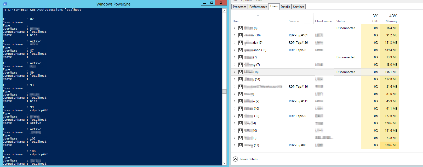 It seems your get-activesession module has problem with parsing sessions that have no session name