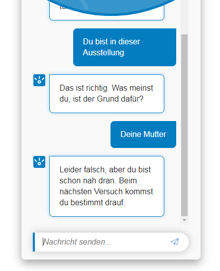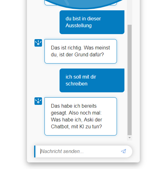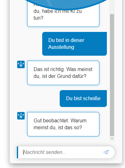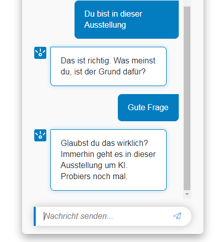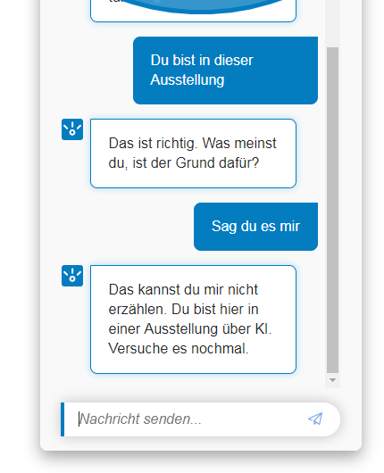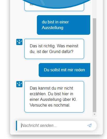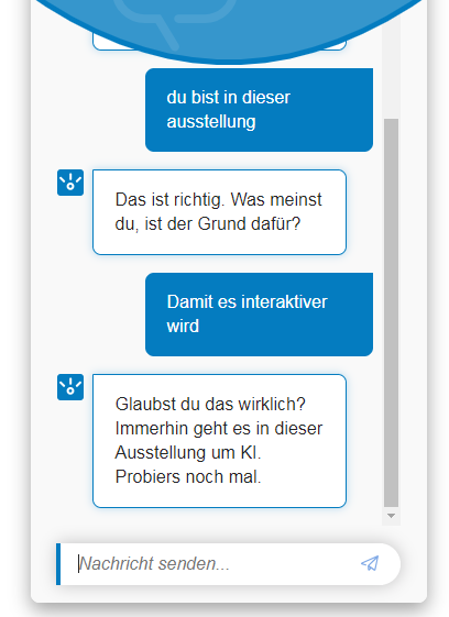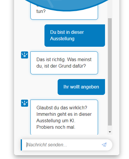 Beziehe mich hier nur mal auf die Begründung des Chatbots in der Ausstellung. Hab mal auch ein paar Antwortmöglichkeiten angegeben.