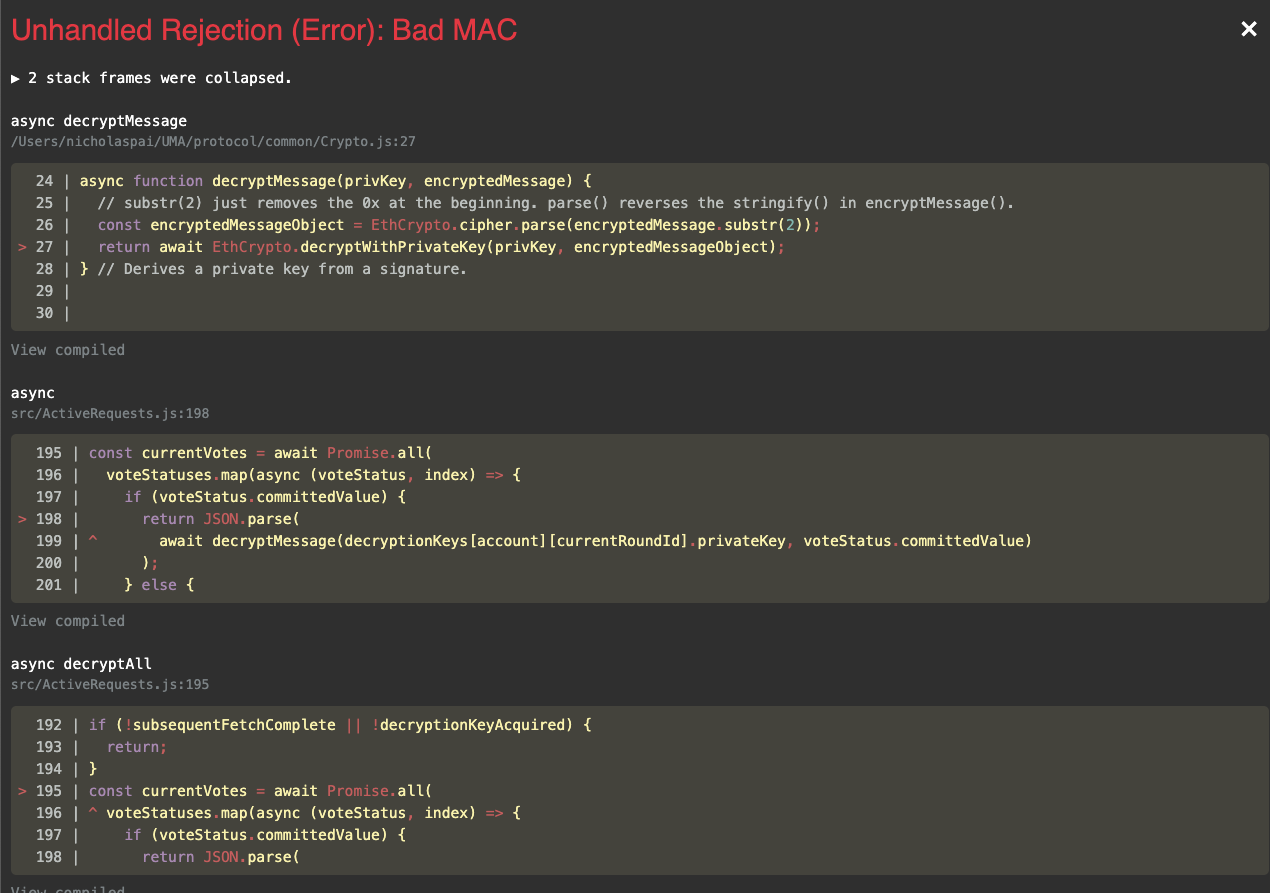 After committing via the CLI, I ran into this error on the dApp when attempting to query EncryptedVotes: