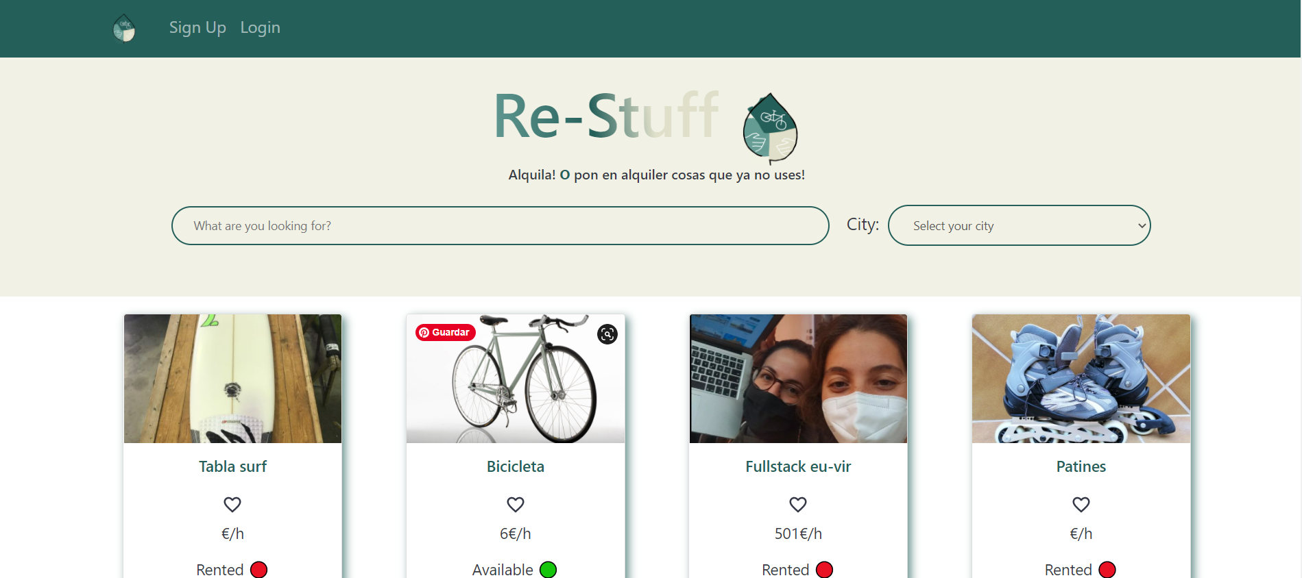 Website about rental product between people. You can upload to product for rent o rent other products. The search bar allow search products for type or for cities. The app allow reading review the other user about some products or you can write your review about experience. Also, you can send a request for rent.