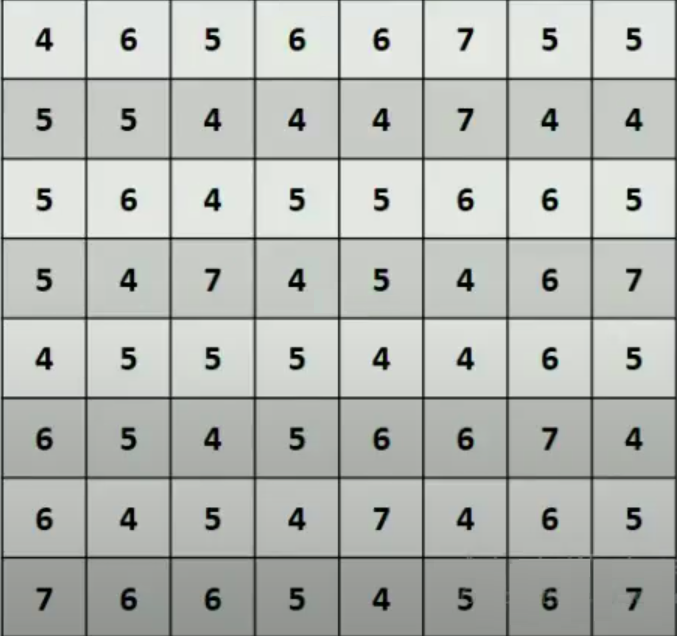 | Grey levels | 0 | 1 | 2 | 3 | 4 | 5 | 6 | 7 |