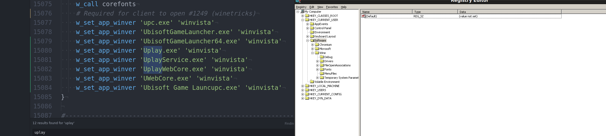 winvistaforupc.exeandUbisoftGameLauncher.exeto avoid rendering issues (PhoenicisOrg/scripts#965 (comment)).Reproduced this issue on winetricks using