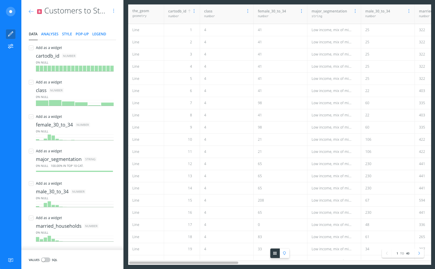 After it is uploaded, you can visualize it in a dataset or on a map, search it using SQL, and apply map styles using CartoCSS. You can even access it using the CARTO APIs, or export it to a file.
