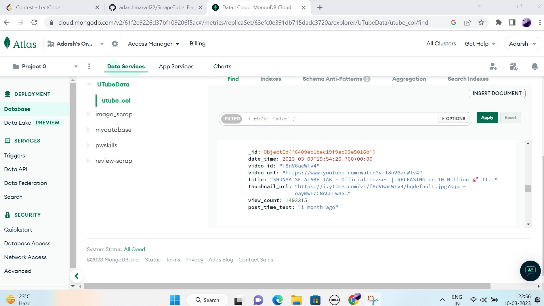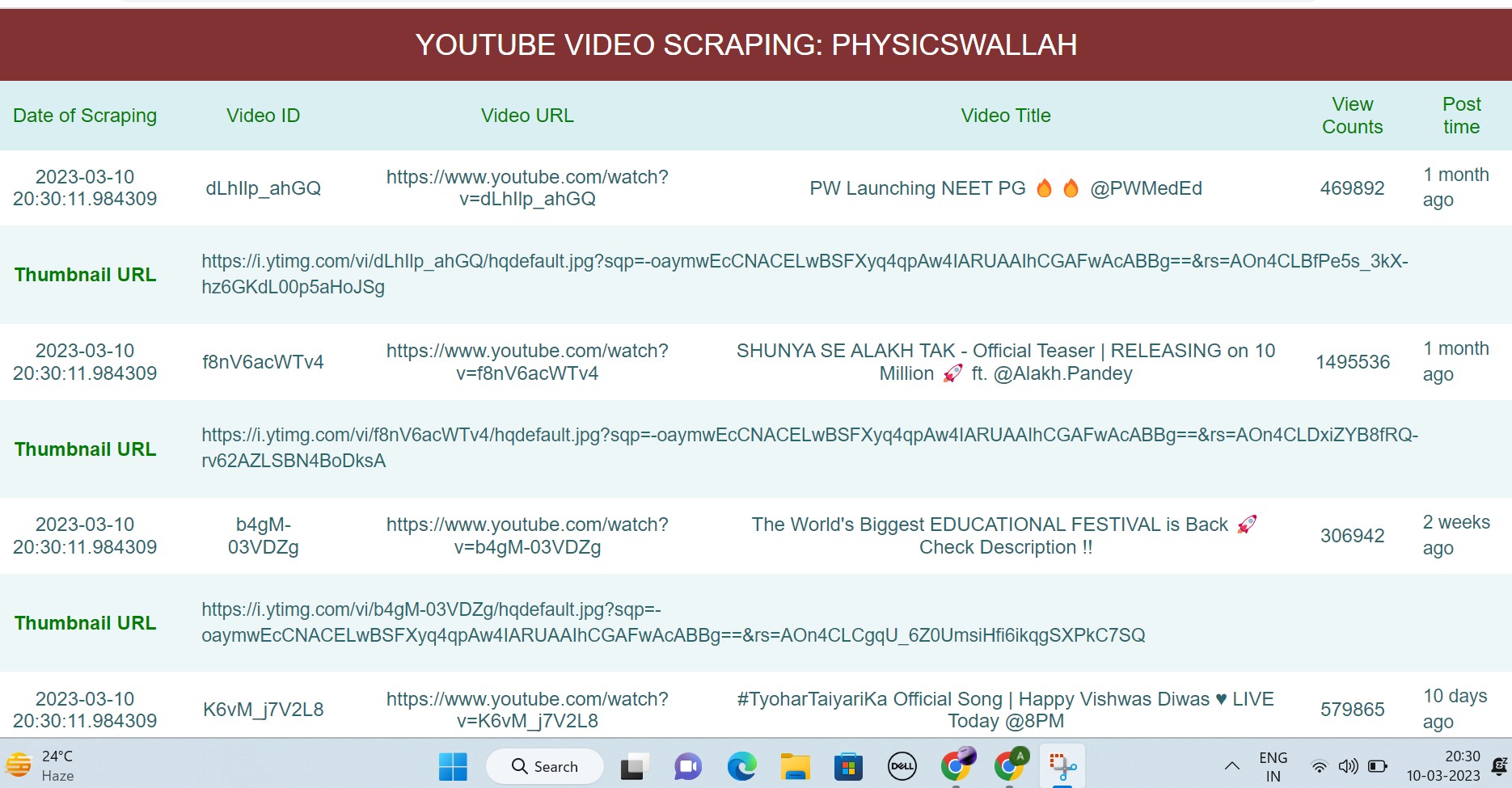 data is saved in the csv file: https://github.com/adarshmarvel22/ScrapeTube/blob/main/videos_data.csv