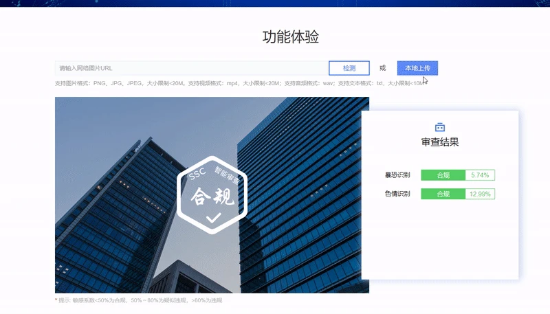 基于深度学习的图像识别算法,海量大数据样本,准确识别图片和视频中的涉黄、 涉暴涉恐、政治敏感、民谣等内容,也能从美观和清晰等维度对图像进行筛选, 快速精准,解放审核人力。