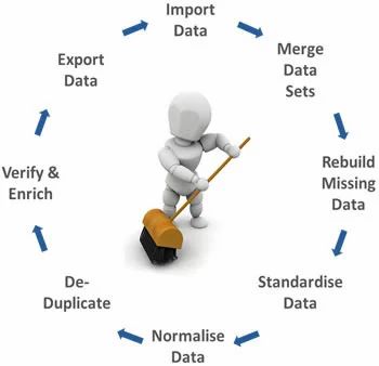 - Data cleansing or data cleaning is the process of detecting and correcting (or removing) corrupt or inaccurate records from a record set, table, or database and refers to identifying incomplete, incorrect, inaccurate or irrelevant parts of the data and then replacing, modifying, or deleting the dirty or coarse data.