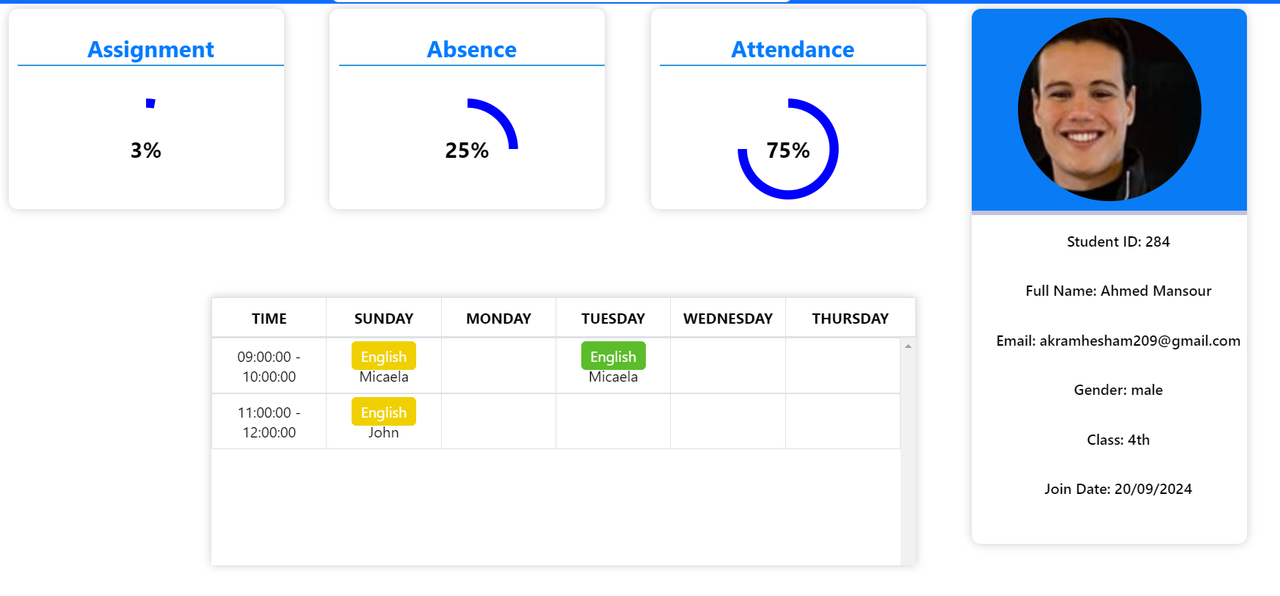 - Retrieve assignment and attendance percentages for students.