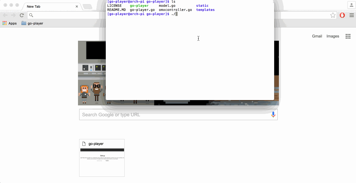 This is the go version of my other project, sto-player which is written in python and uses web.py and popen as external dependencies. One of the reasons I started this project was I noticed a bit of slowness to sto-player on occasion (Testing this on the RPi2 hardware). sto-player could sometimes take around 2 seconds to perform commands like starting or stopping a film. go-player in contrast however is pretty much instantaneous in everything it does.