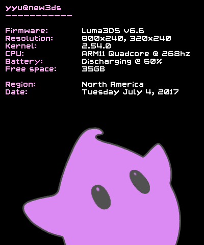 A screenshot generated by 3dfetch on a New 3DS with Luma CFW.