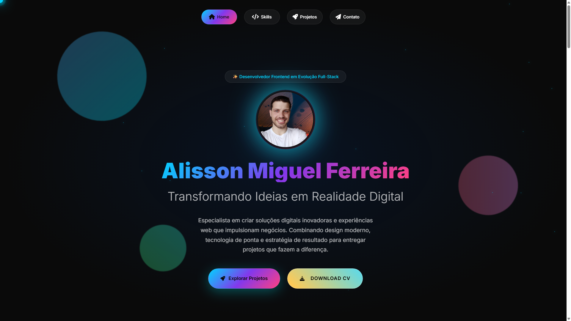 Explore meus projetos práticos e habilidades em desenvolvimento front-end, com destaque para soluções criativas, código limpo e design responsivo. Aqui você encontrará meu estilo de trabalho, minhas conquistas e formas de contato, tudo organizado de maneira clara para mostrar meu potencial como desenvolvedor.