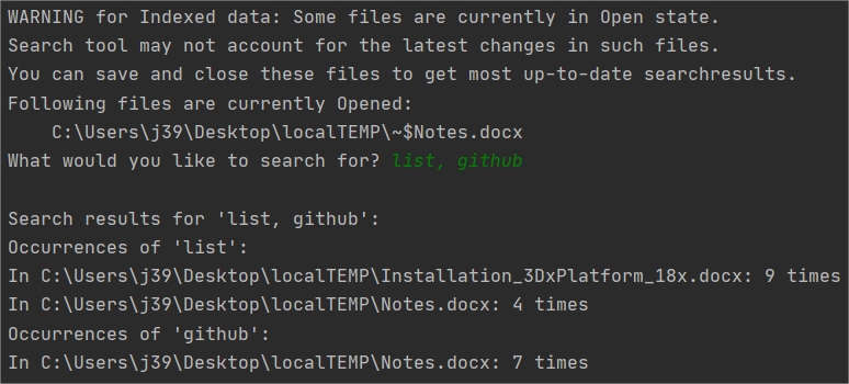 - Create indexes (in-memory) for all the docx files present in directories and sub-directories