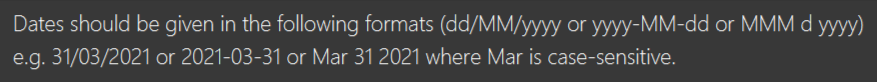 In UG:  In app:  Inconsistencies in capitalisation for `dd` or `yyyy`. Also the last date format (`MMM d yyyy`) is missing a d. <!--session: 1618551956246-04d17208-883b-4012-bb81-7fa1b413e5bd-->