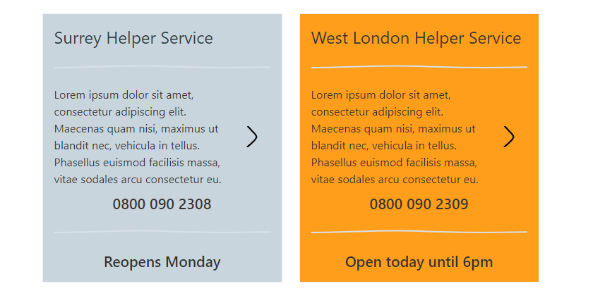 THEN each Helper Service list item will have the following properties: Title - linked to a page (https://www.mariecurie.org.uk/help/helper-volunteers), Description, Telephone number and a currently open / closed status