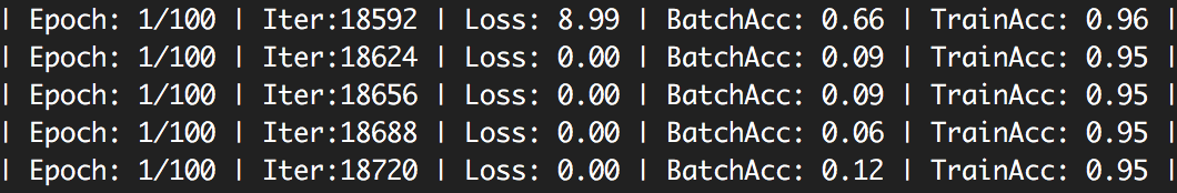 After this warning, training continues, but model performance degrades entirely. Before the error, this network was getting Batch Accuracy ~ 96%