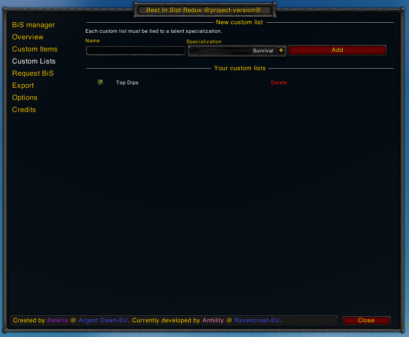 You can make custom BiS lists if you need more than the standard one for each specc.