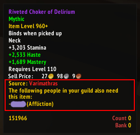 And if you have a persons BiS list so can you see that they need that item with the ingame tooltip.