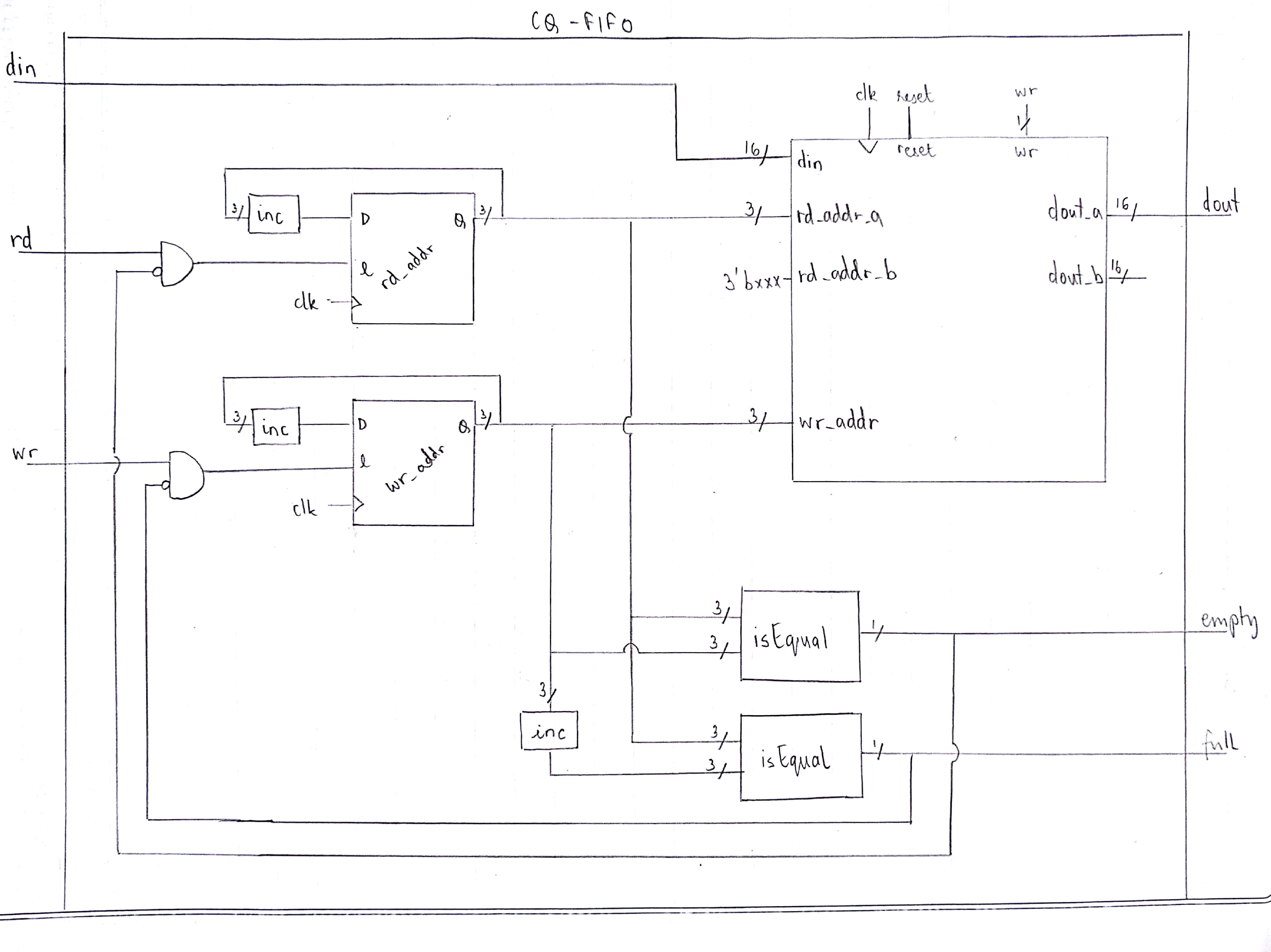 Read and write addresses are initially both at the first memory location. When the read address and write address are equal then the FIFO queue is Empty. When the write address is one value behind the read address of the FIFO buffer then the FIFO queue is Full.