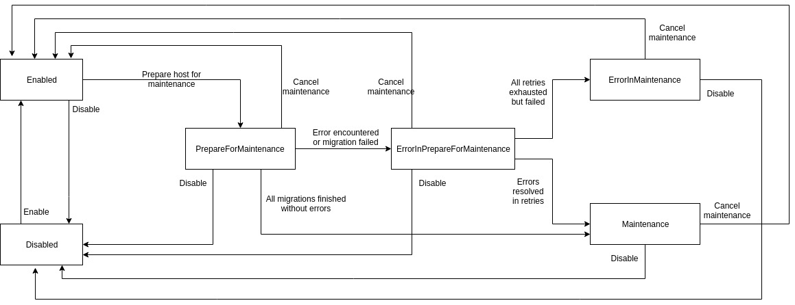 We want to update how host enters maintenance and it's states change. There have been instances when host was stuck in PrepareForMaintenance state indefinitely because all states weren't accounted for.