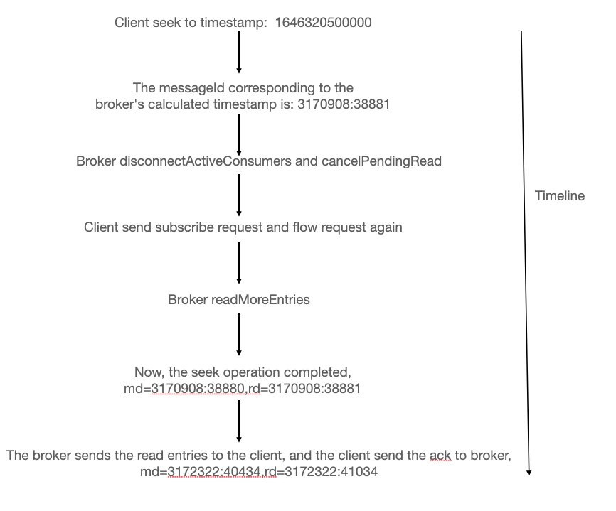 seekoperation is delayed. The client first subscribed a subscription and initiates aFLOWrequest, causing the broker to start reading data.
