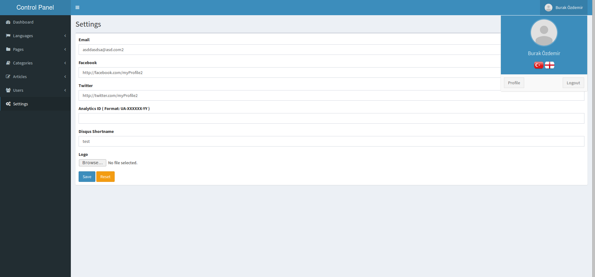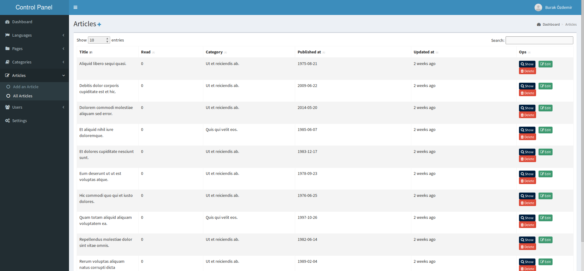 - Laravel 5 ile CMS - WYSIWYG Filemanager, Çoklu Dil, Google Analitik API
