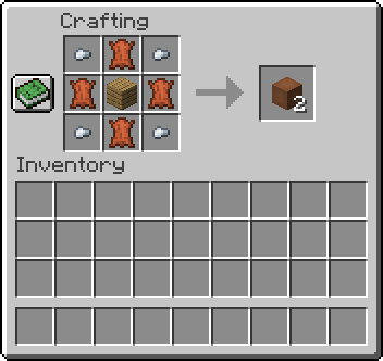 Leather blocks can be crafted by using 4 iron nuggets, 4 leather, and a wooden plank.