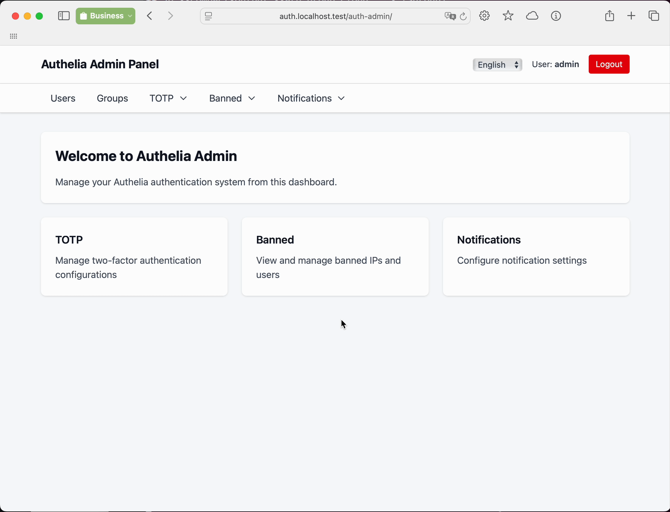 Don't forget to configure your load balancer. Authelia Admin CP should be accessible at https://{{AAD_AUTHELIA_DOMAIN}}/auth-admin/.