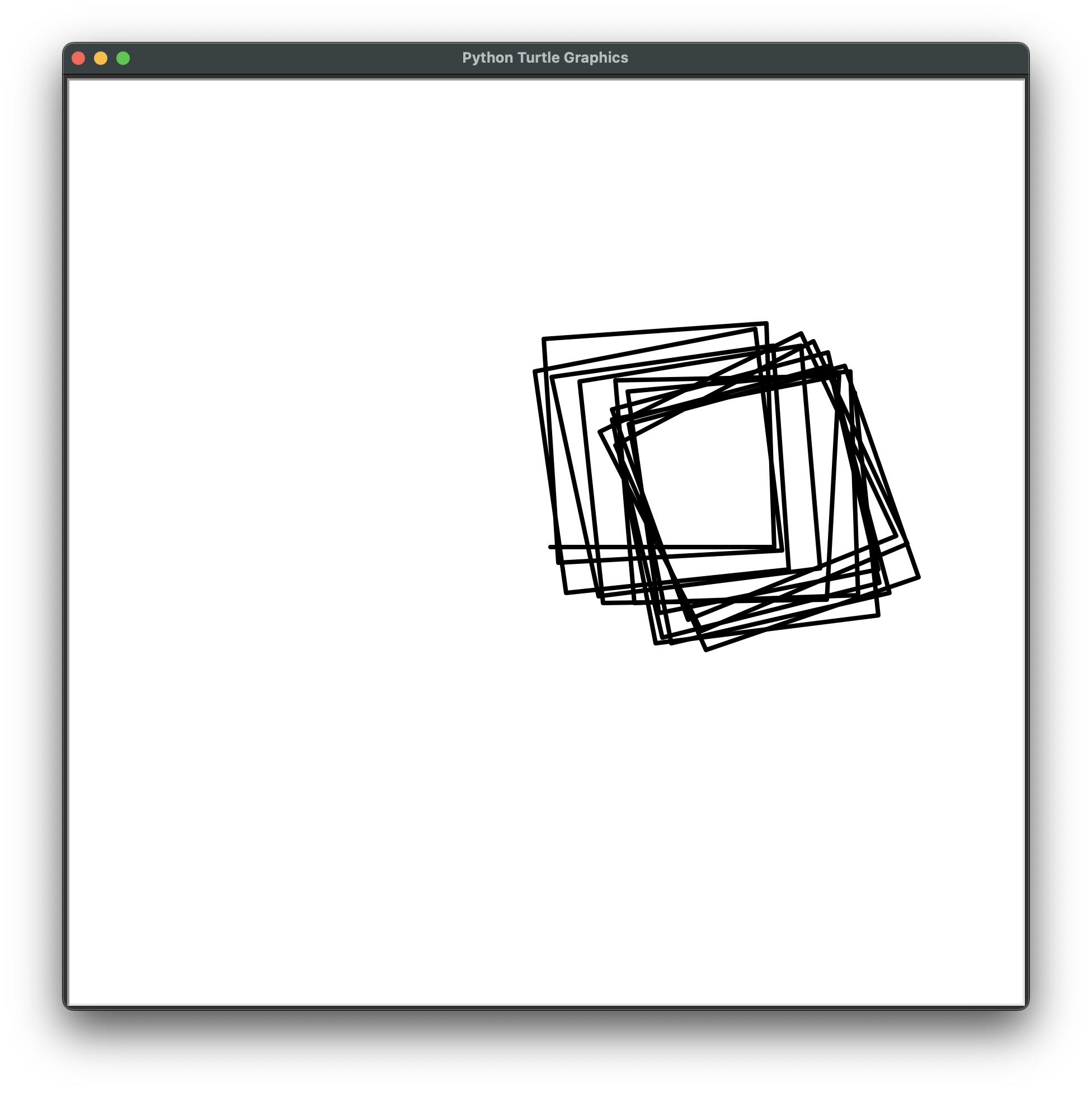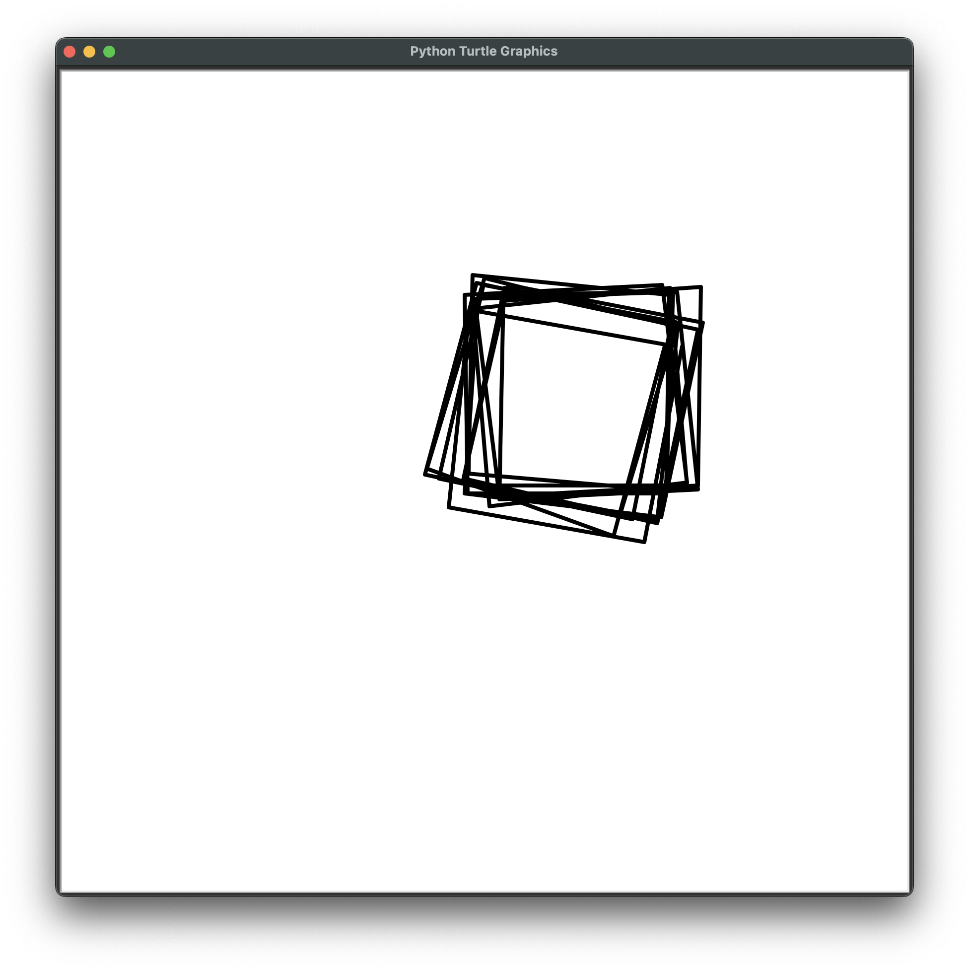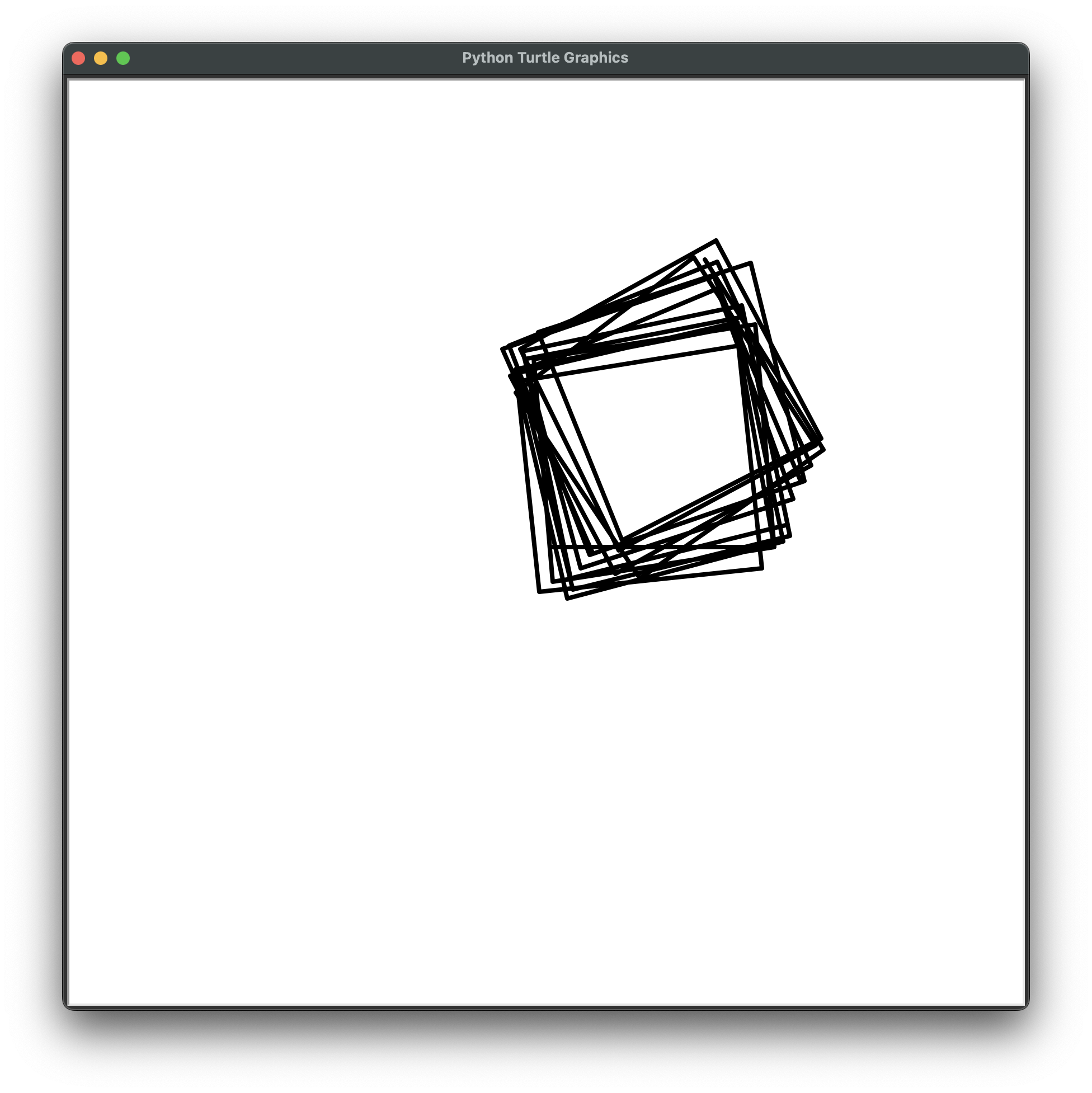 done()When you run the program, it draws a smaller square because the lines are only 25 steps long instead of 200 steps.