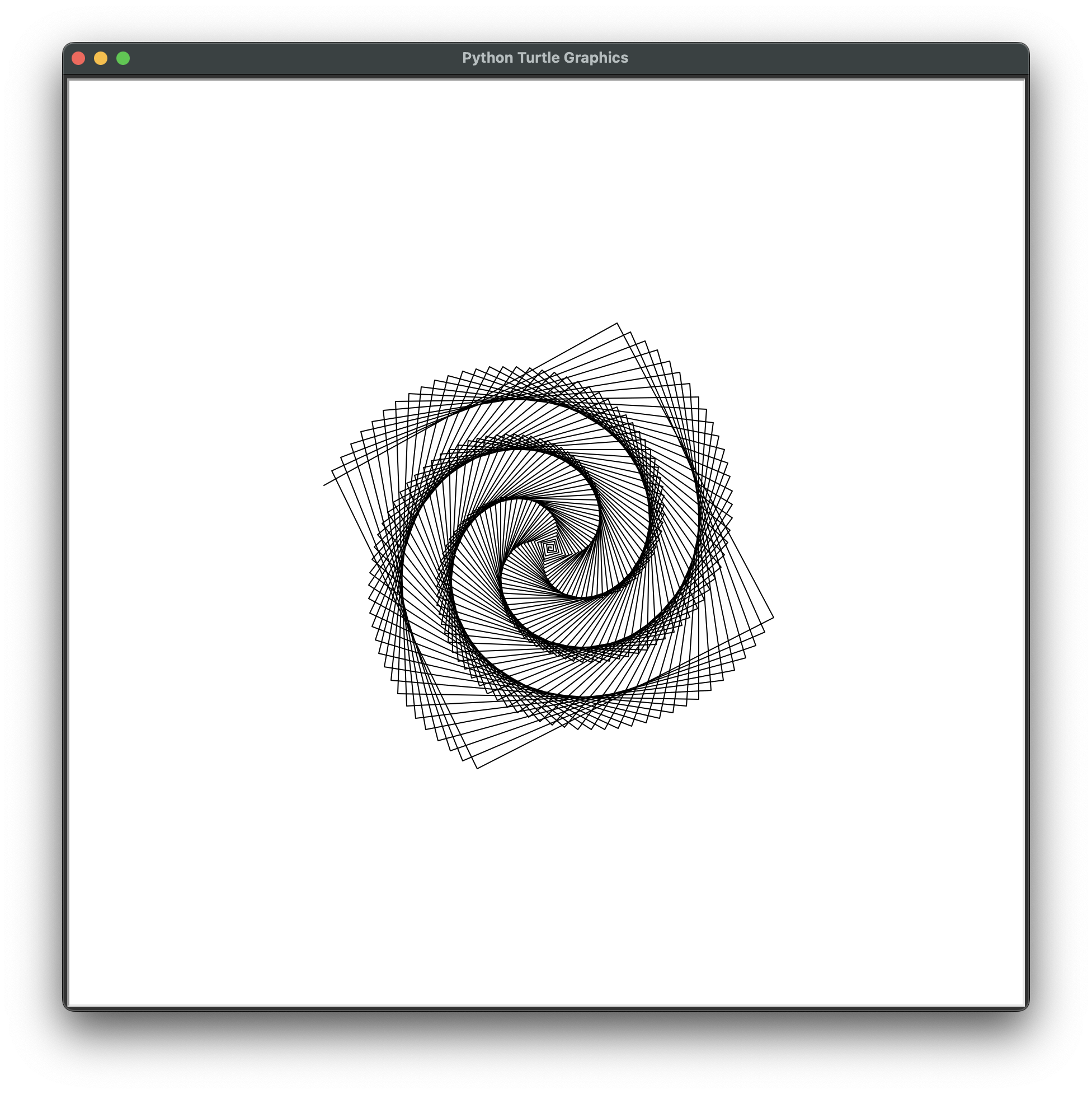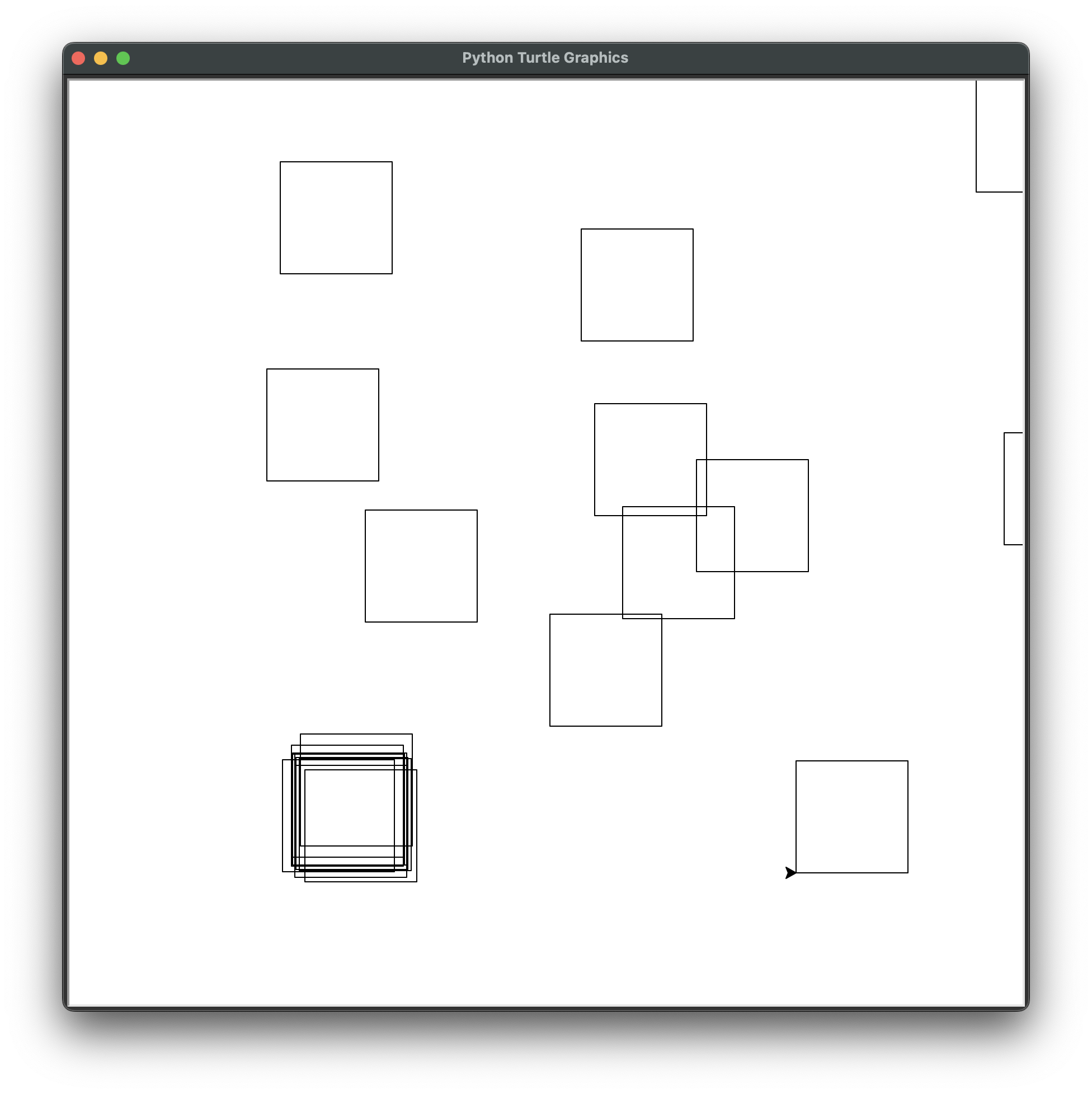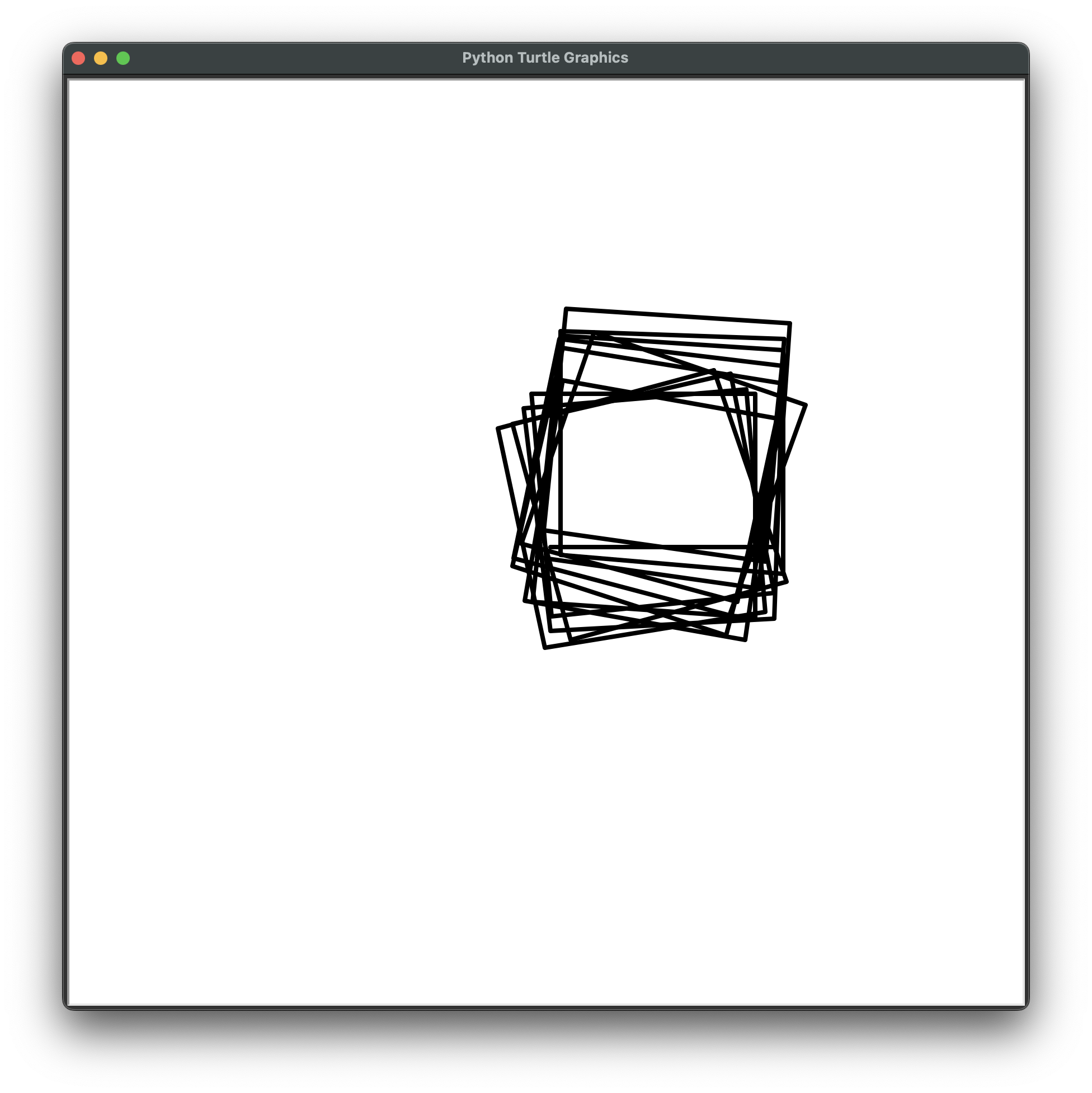 done()When you run the program, it draws a smaller square because the lines are only 25 steps long instead of 200 steps.