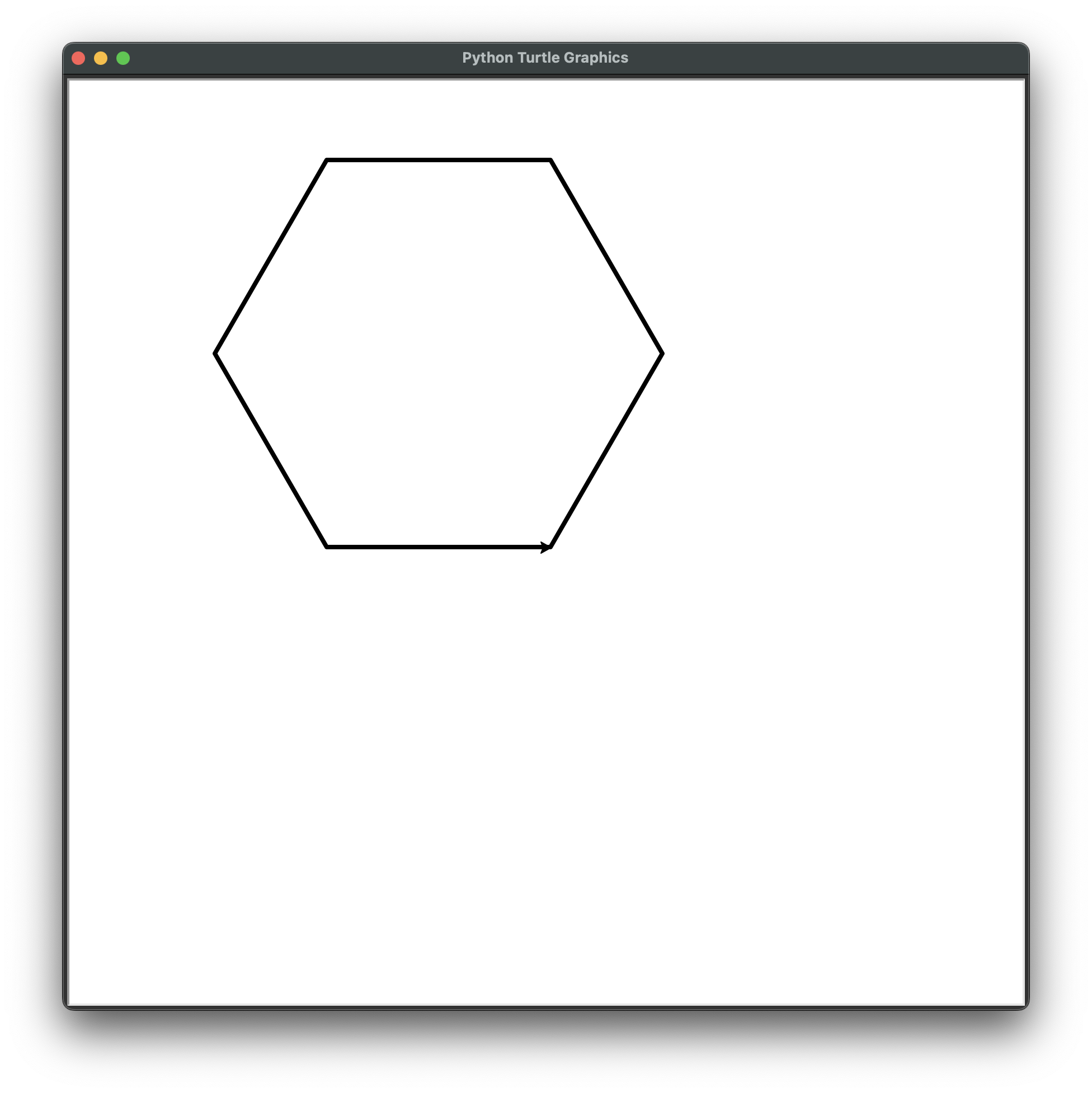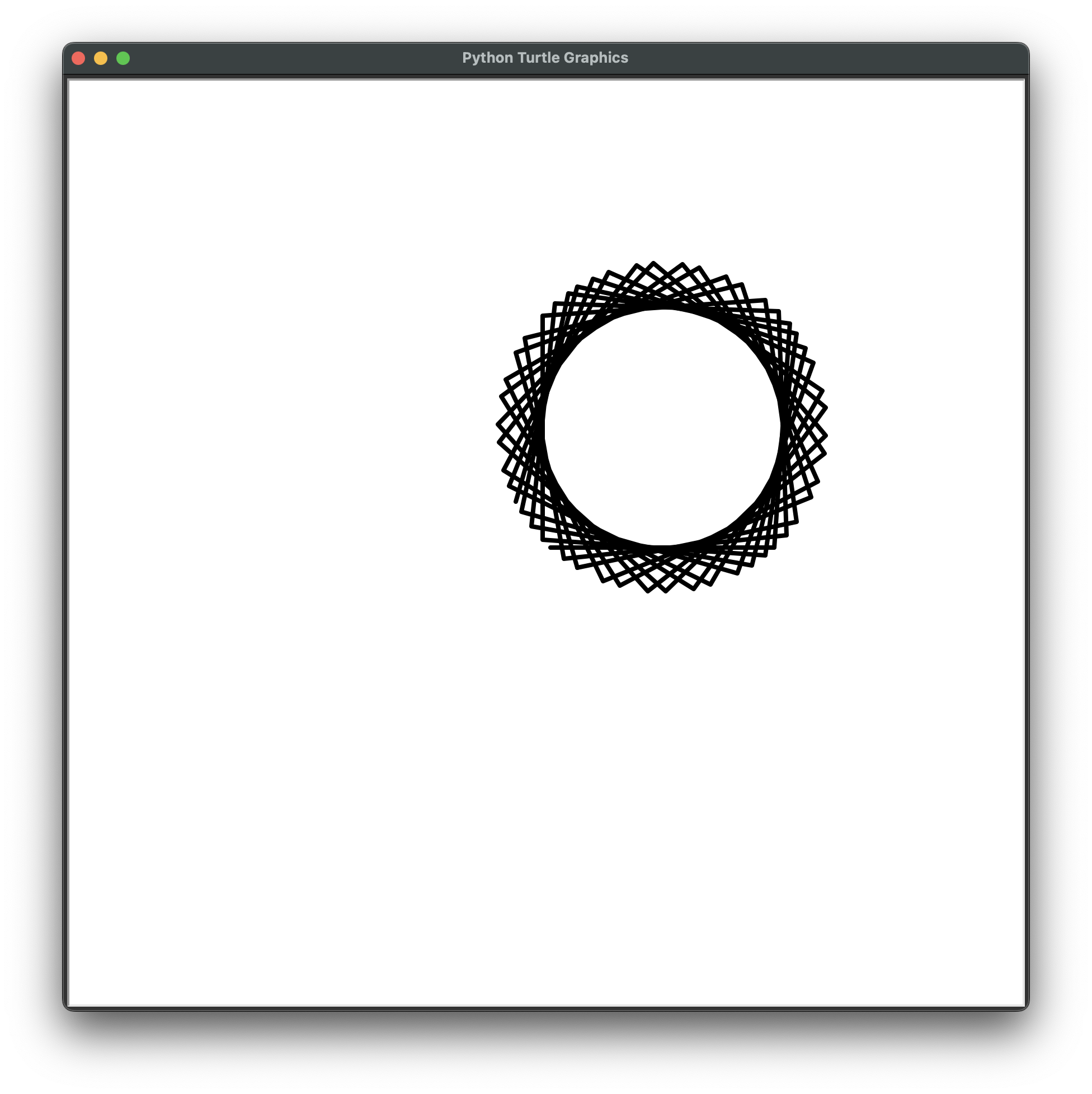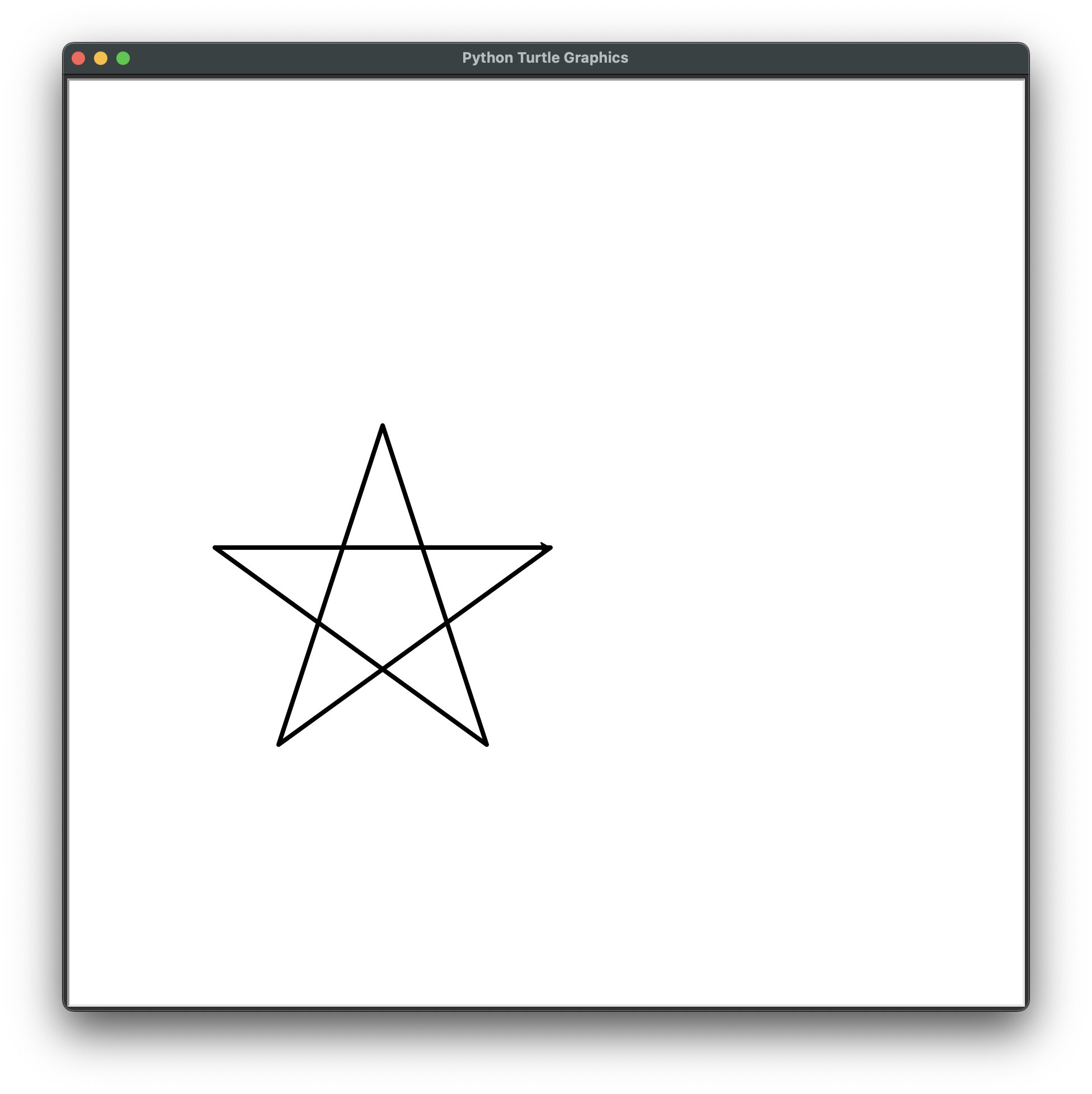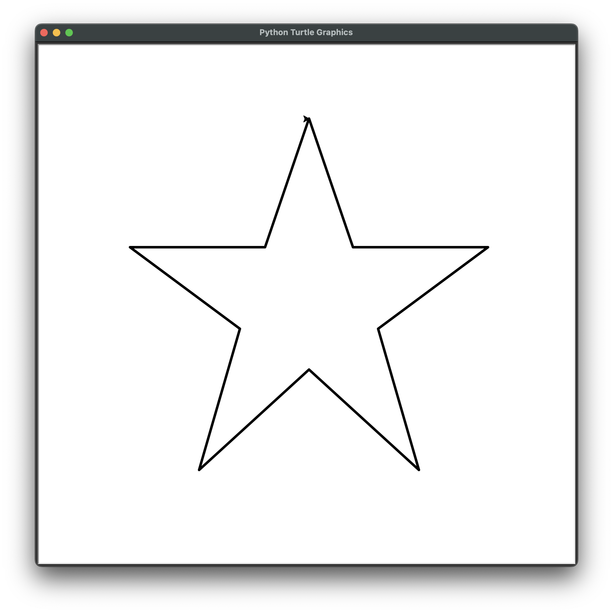done() # Without this, the Turtle window may immediately close before you can see the picture.Save the file after entering the code. Then run the program. (If you are using IDLE for your code editor, you can press F5 or click the Run > Run Module) menu item. In Visual Studio Code, click the Run > Run Without Debugging menu item. In other editors, the steps to run a program may be different.)