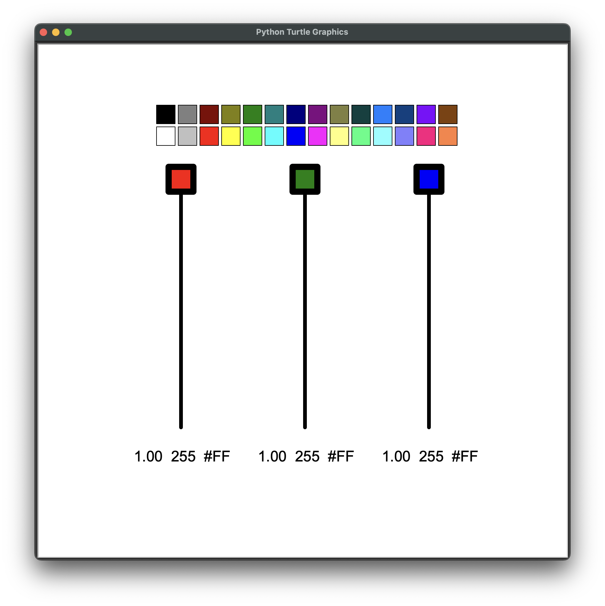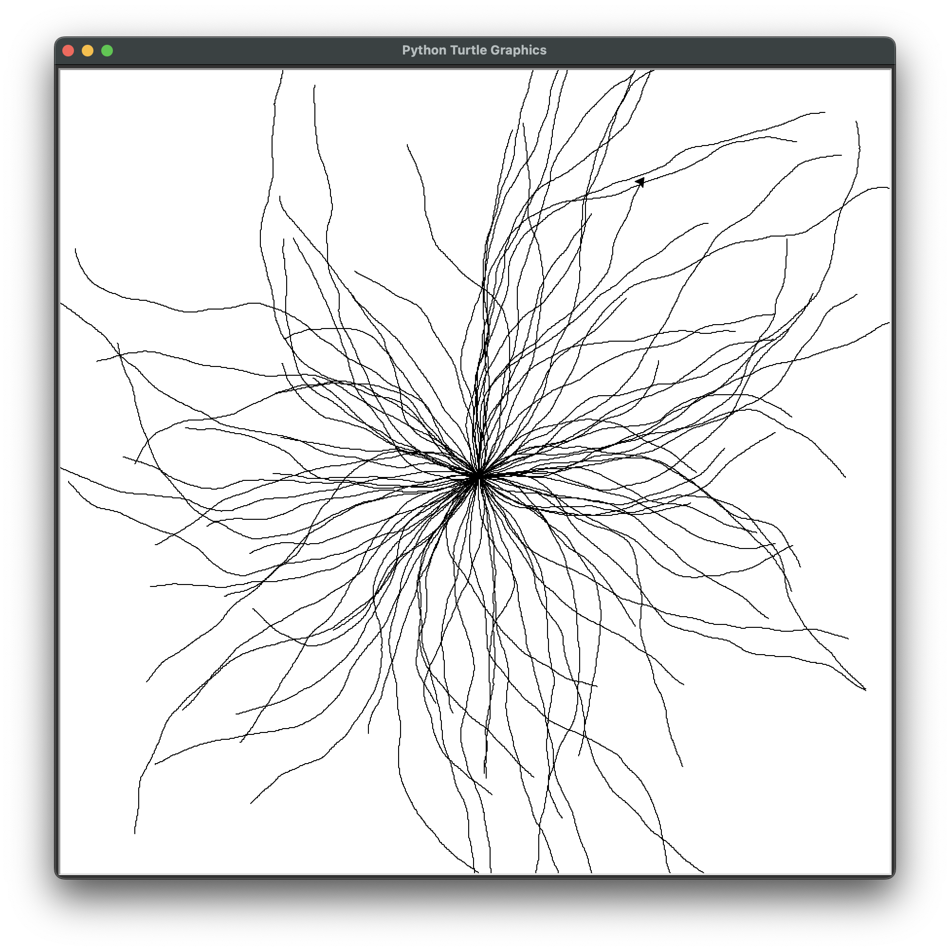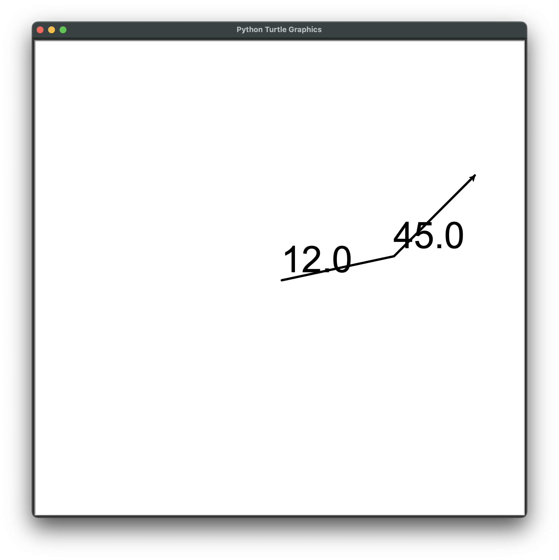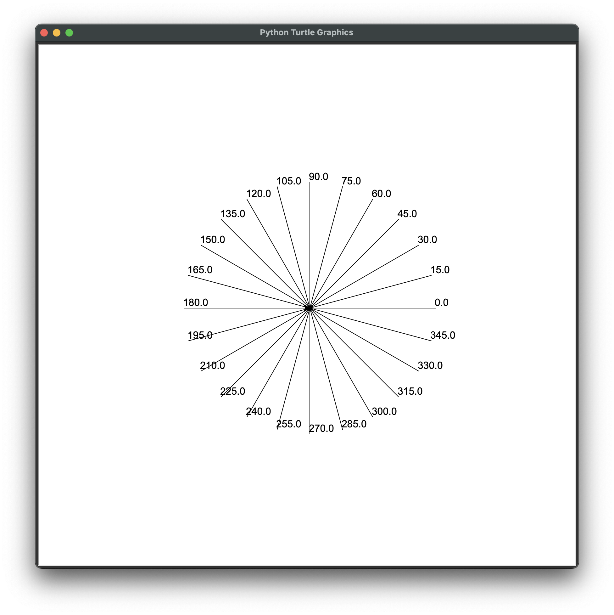 done() # Without this, the Turtle window may immediately close before you can see the picture.Save the file after entering the code. Then run the program. (If you are using IDLE for your code editor, you can press F5 or click the Run > Run Module) menu item. In Visual Studio Code, click the Run > Run Without Debugging menu item. In other editors, the steps to run a program may be different.)